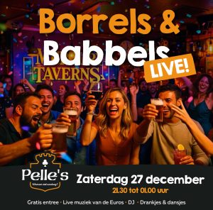 Kom alvast in kerstsfeer op kerstmiddag bij Pelle's. Borrels & Babbels. Met muziek, drankjes & dansjes.